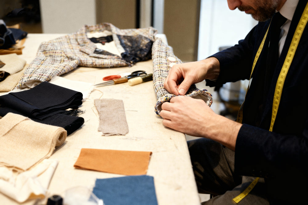 European atelier techniques. The same mills as luxury houses. Pieces finished by masters with 30+ years at the bench.