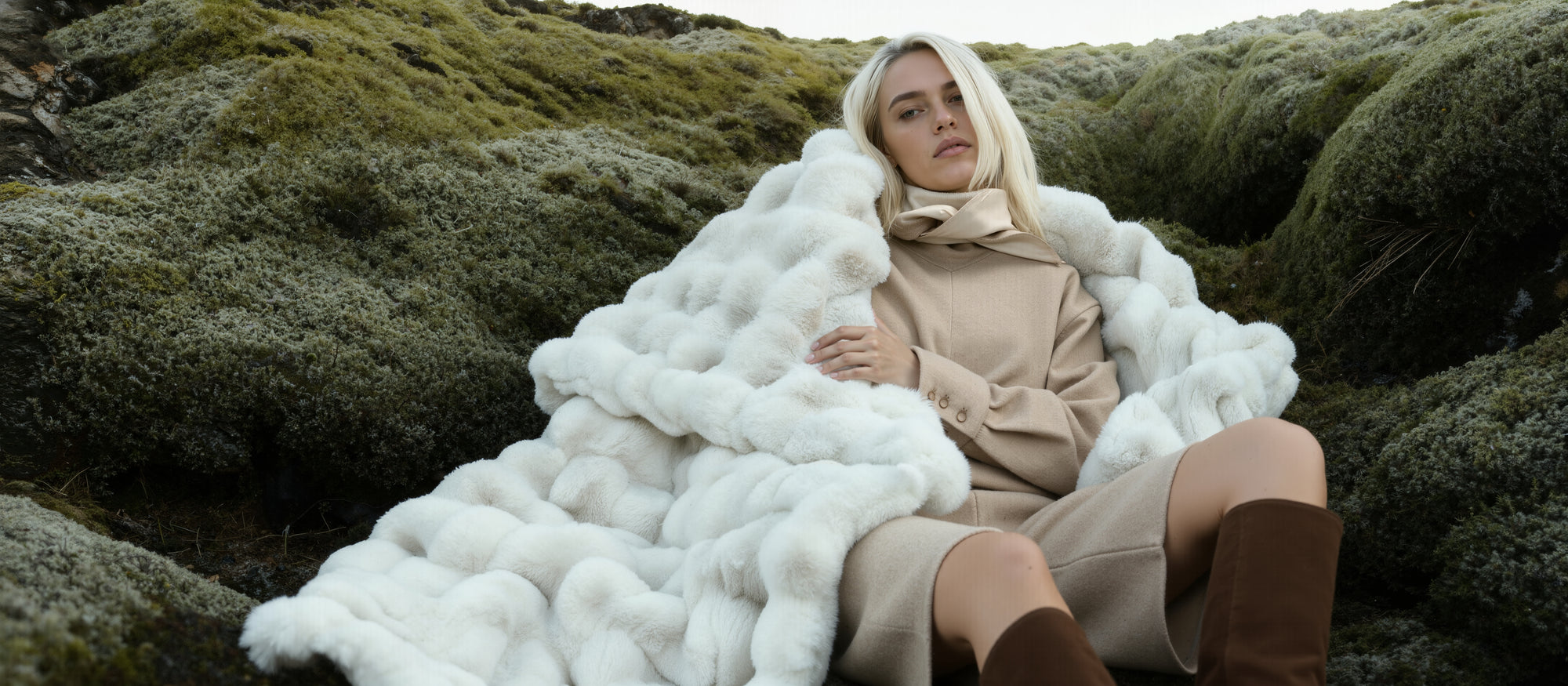 Features: A sculptural long coat defined by a built-in scarf neckline that wraps naturally around the shoulders. Crafted from pure superfine Merino wool, the surface is soft with a refined brushed texture, bringing warmth and elegance in equal measure. Minimal seams and a single concealed button closure maintain a clean, architectural silhouette.